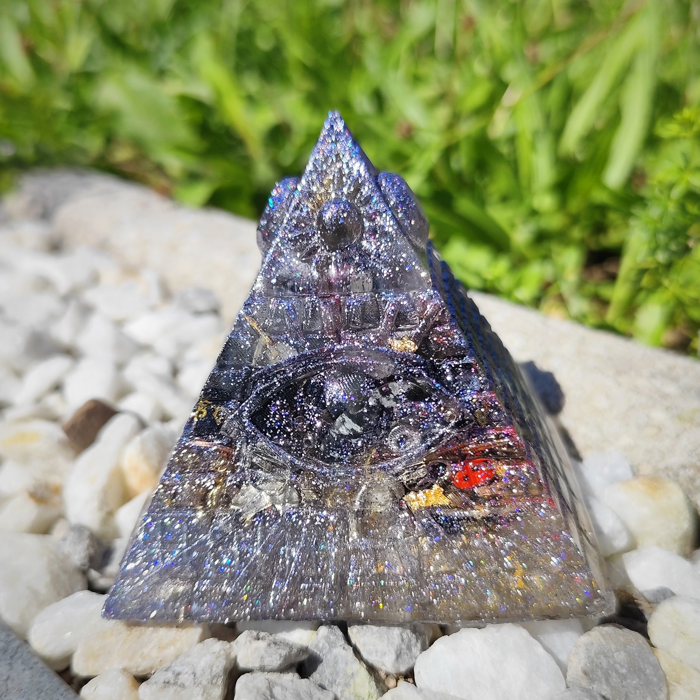 Plonge dans l’univers envoûtant de cette orgonite pailletté, un sanctuaire d’énergie façonné avec amour et intention. Sa structure sacrée unit la force de l’obsidienne, de labradorite, pierres de protection par excellence, et la clarté du quartz, amplificateur d’énergie et de lumière.